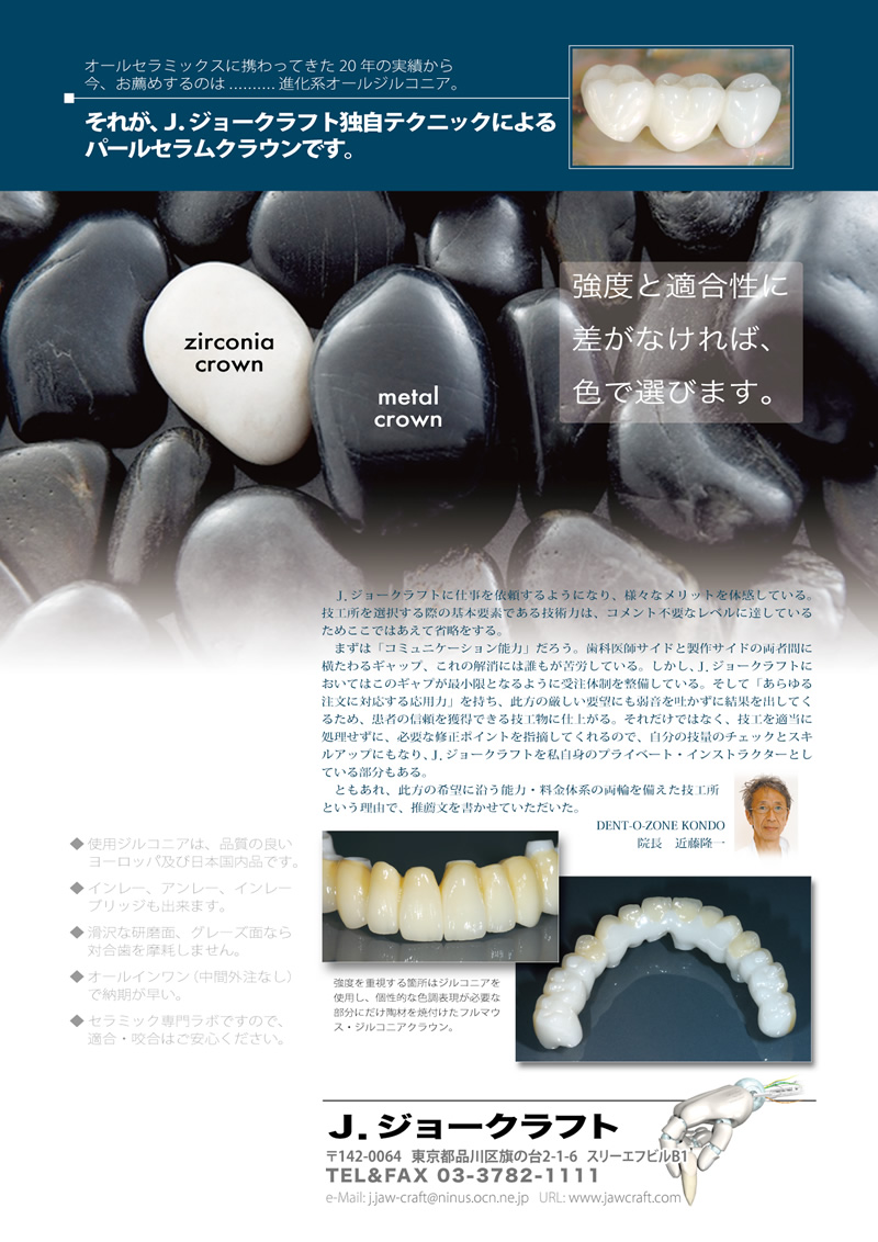 ジルコニアを素材としたクラウンは、金属とほぼ同じ硬さなのにアレルギーの心配がなく安心してお薦め出来ます。
